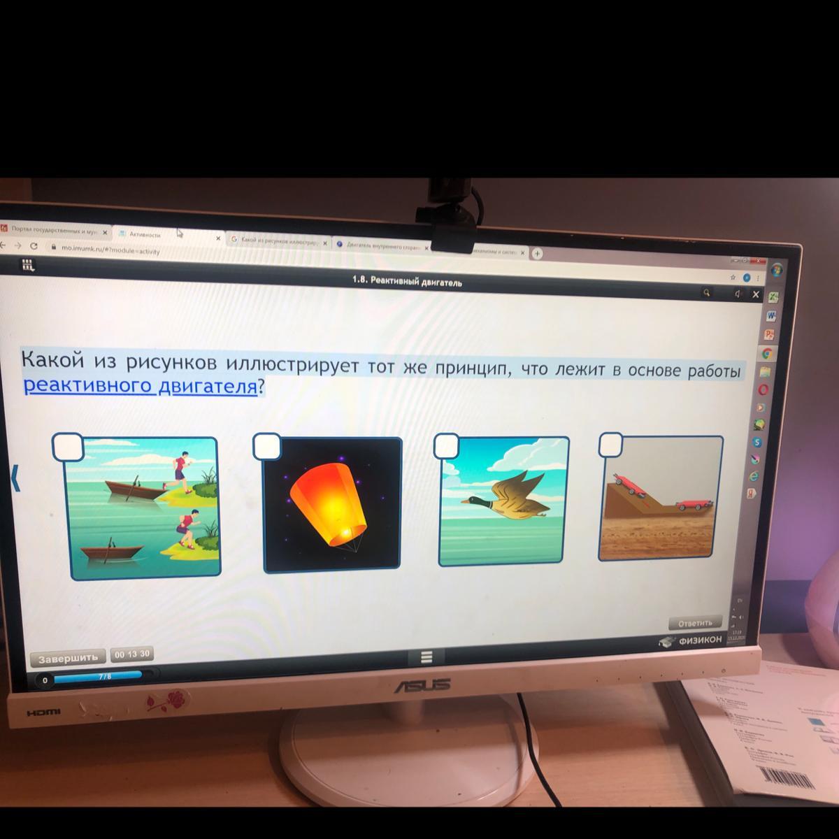 Первый вариант, тк работает на принципе того, что при использовании реакт, двигателя в помощью вылетающих газов, но также это работает благодаря их горению