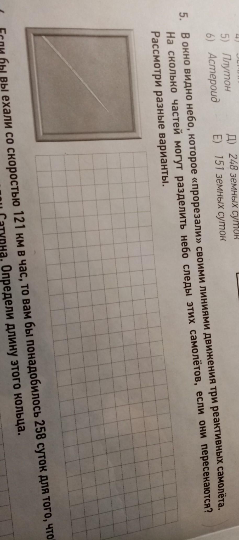 в окно видно небо которое прорезали своими линиями движения три самолета. на сколько частей могут разделить небо следы этих самолетов если они пересекаются. расмотри варианты