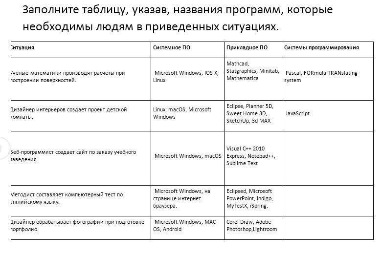 Прикладные программы – это текстовые редакторы, аудио и видео редакторы, система управления базовыми данными, текстовые процессоры (Ms Word), электронные таблицы (Ms Excell).