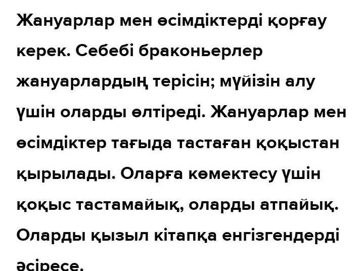 Олар бізге керек, біз оларға керекпіз. Жануарлар мен өсімдіктерді қорғау біздің парызымыз.