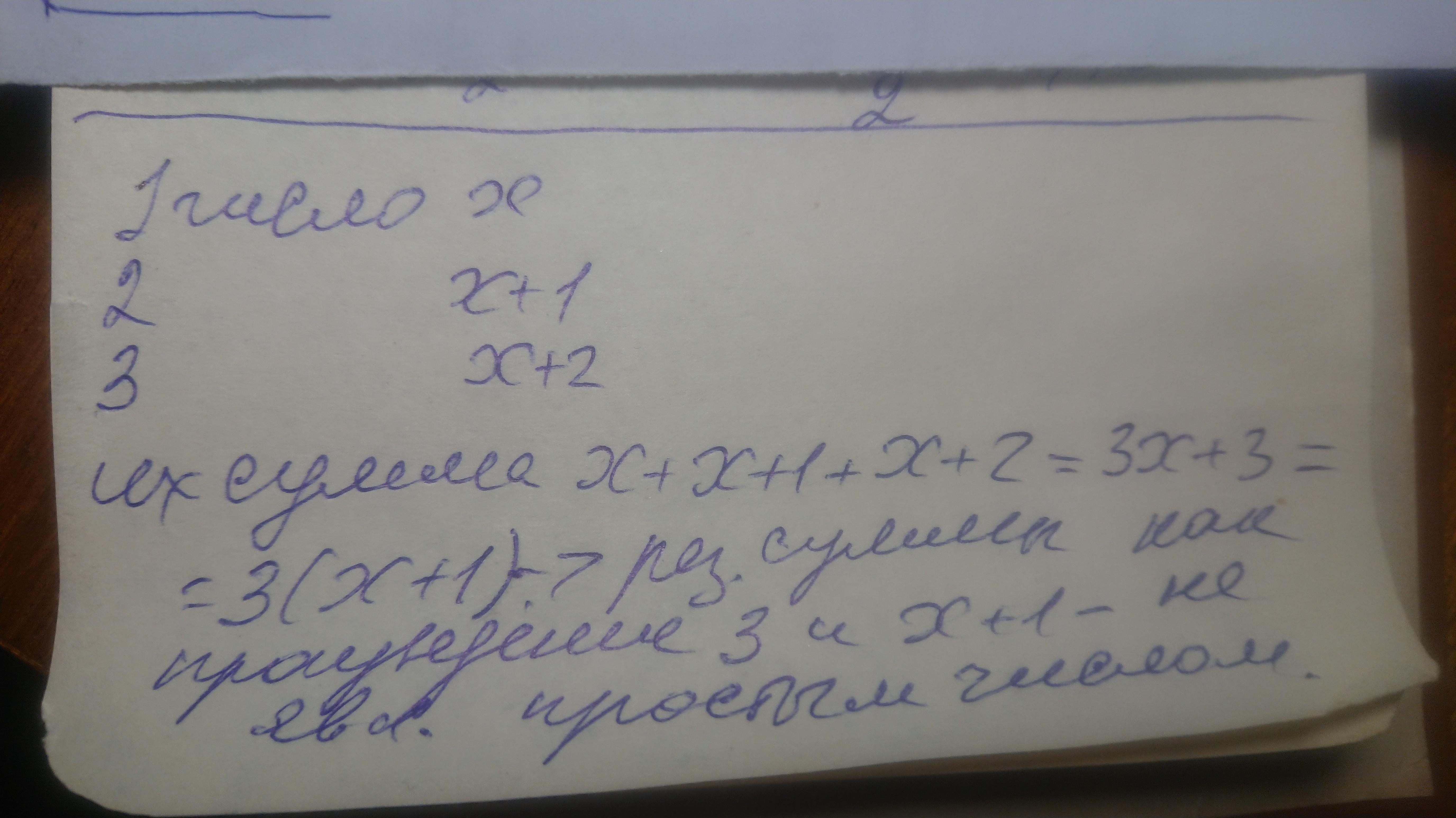 n+(n+1)+(n+2)=3n+3=3(n+1). Вывод: сумма трех последовательных натуральных чисел является составным числом.