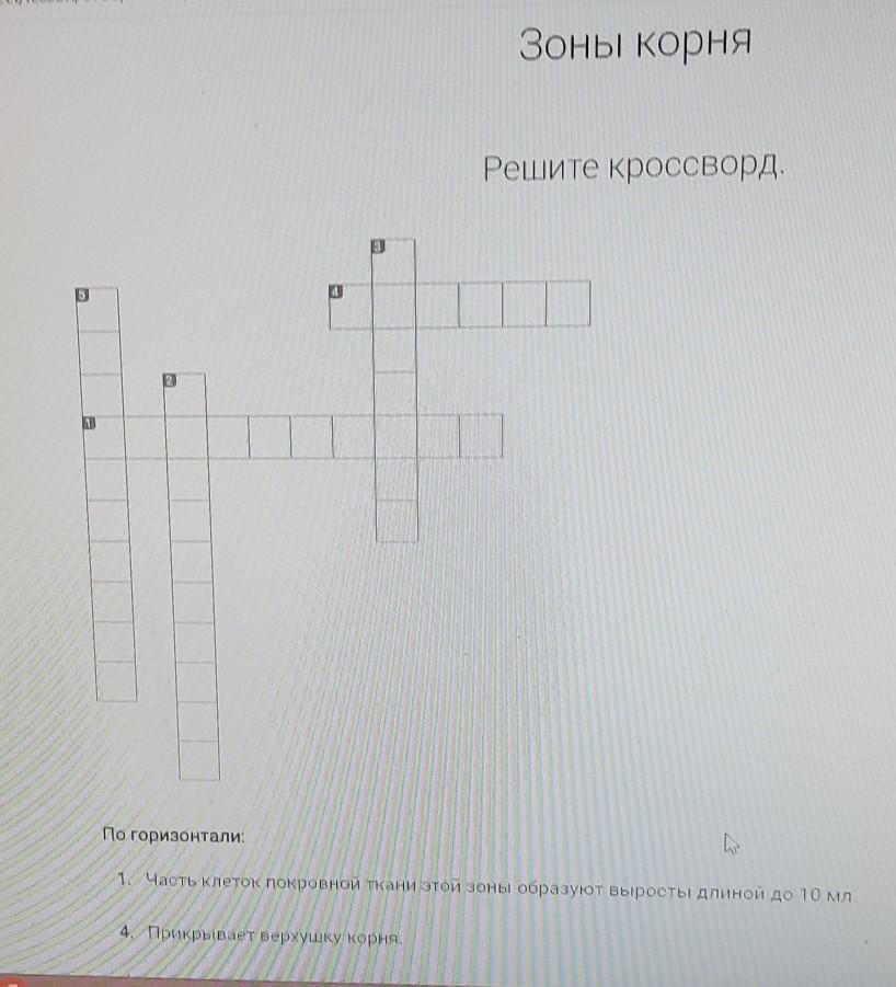 по вертикали: 2. клетки этой зоны вытягиваются; 3. участок корня длиной около 1мм; 5. в этой зоне образуются боковые корни.