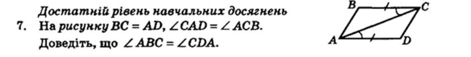ΔАВС = ΔСДА по двум сторонам и углу между ними. 1 признак равенства ттреугольников. В равных треугольниках против равных сторон лежат равные углы.