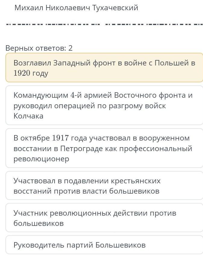 Верных ответов 2:Возолавил Западный фронт в войне с Польшей в 1920 году и участник революционных действийй