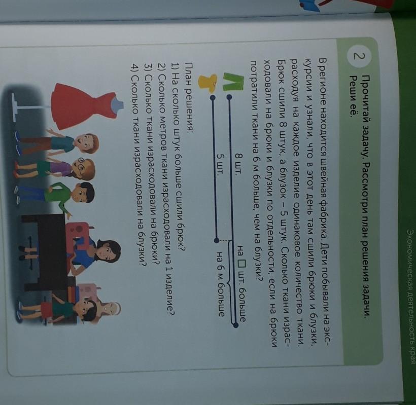 2) 6 ÷ 3 = 2 (м) израсходовали на 1 изделие