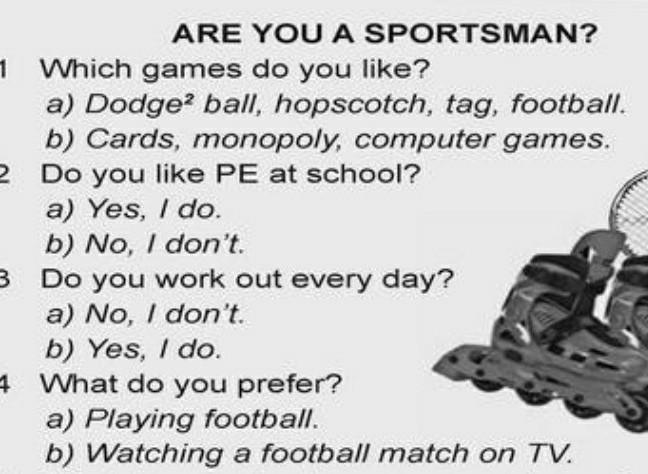 Здесь нет ничего сложного на самом деле.Думаю,ты и сам можешь выбрать варианты ответа.Я помогу тебе с переводом.