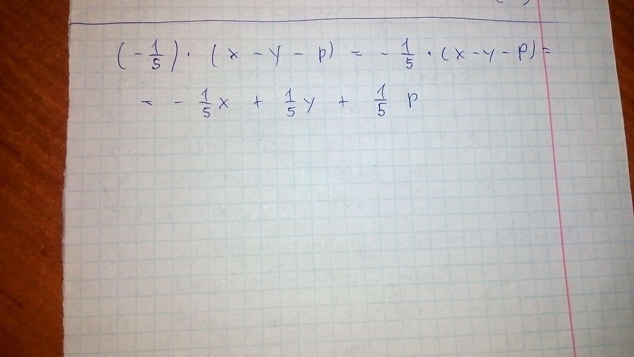 Найди произведение многочлена и одночлена (−1/5)⋅(x−y+p).