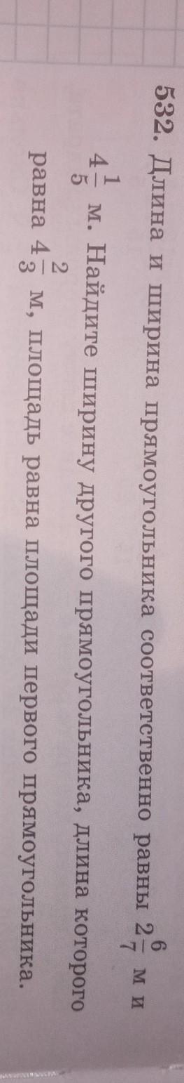 длина и ширина прямоугольника соответственно равны 2 6/7м и 4 1/5м.з найдите ширину другого прямоугольника длина которого равна 4 2/3м,площадь равна площади первого прямоугольника.