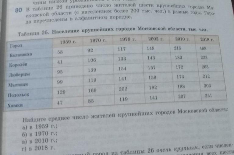 Задание 80) Найдите среднее число жителей крупнейших городов Московской области: