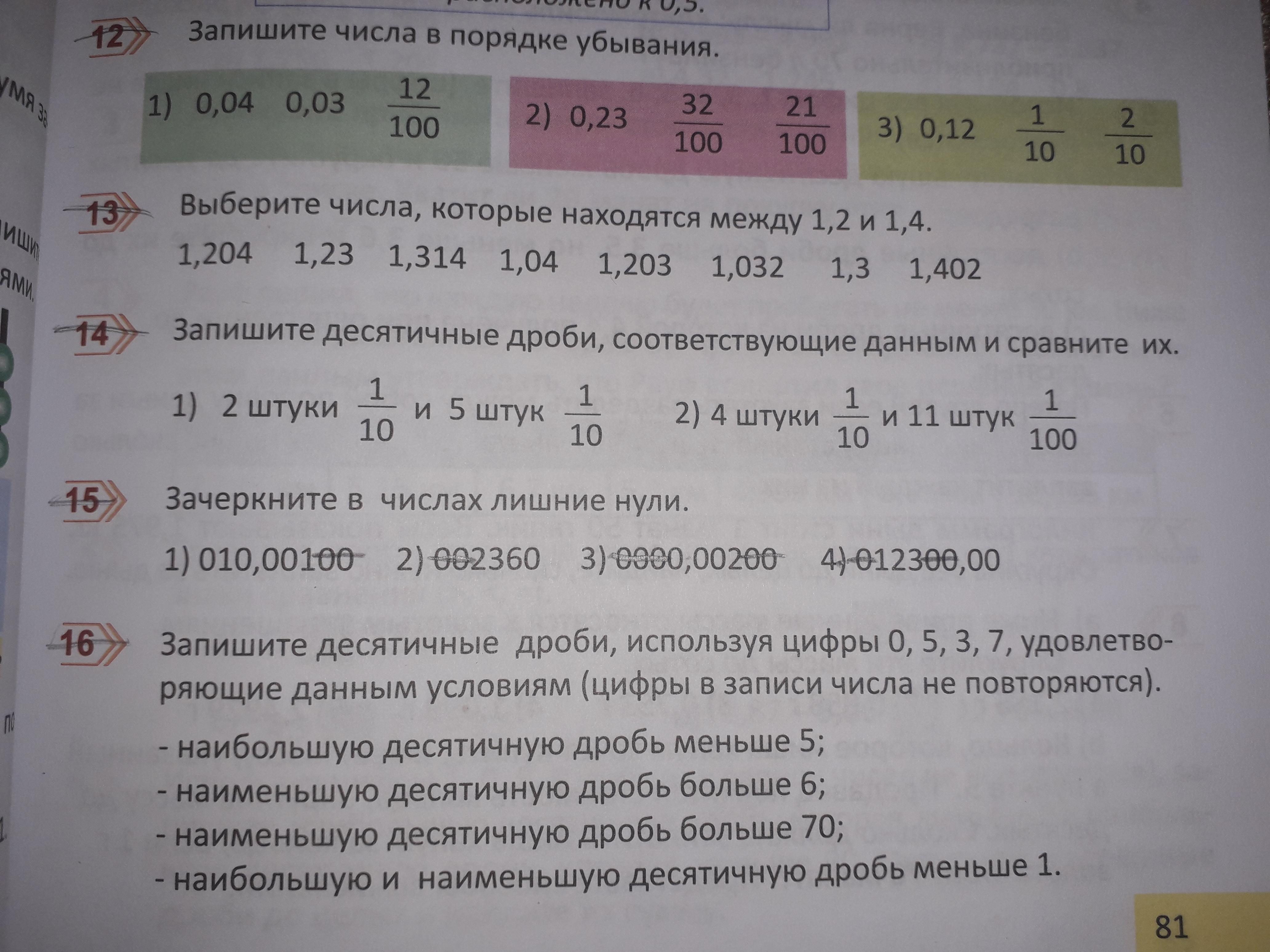 12) 12/100; 0,04; 0,03 32/100; 0,23; 21/100 1/10; 0,12; 2/10