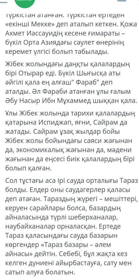 Мәтіндегі ескі қалалардың атын теріп жазу.