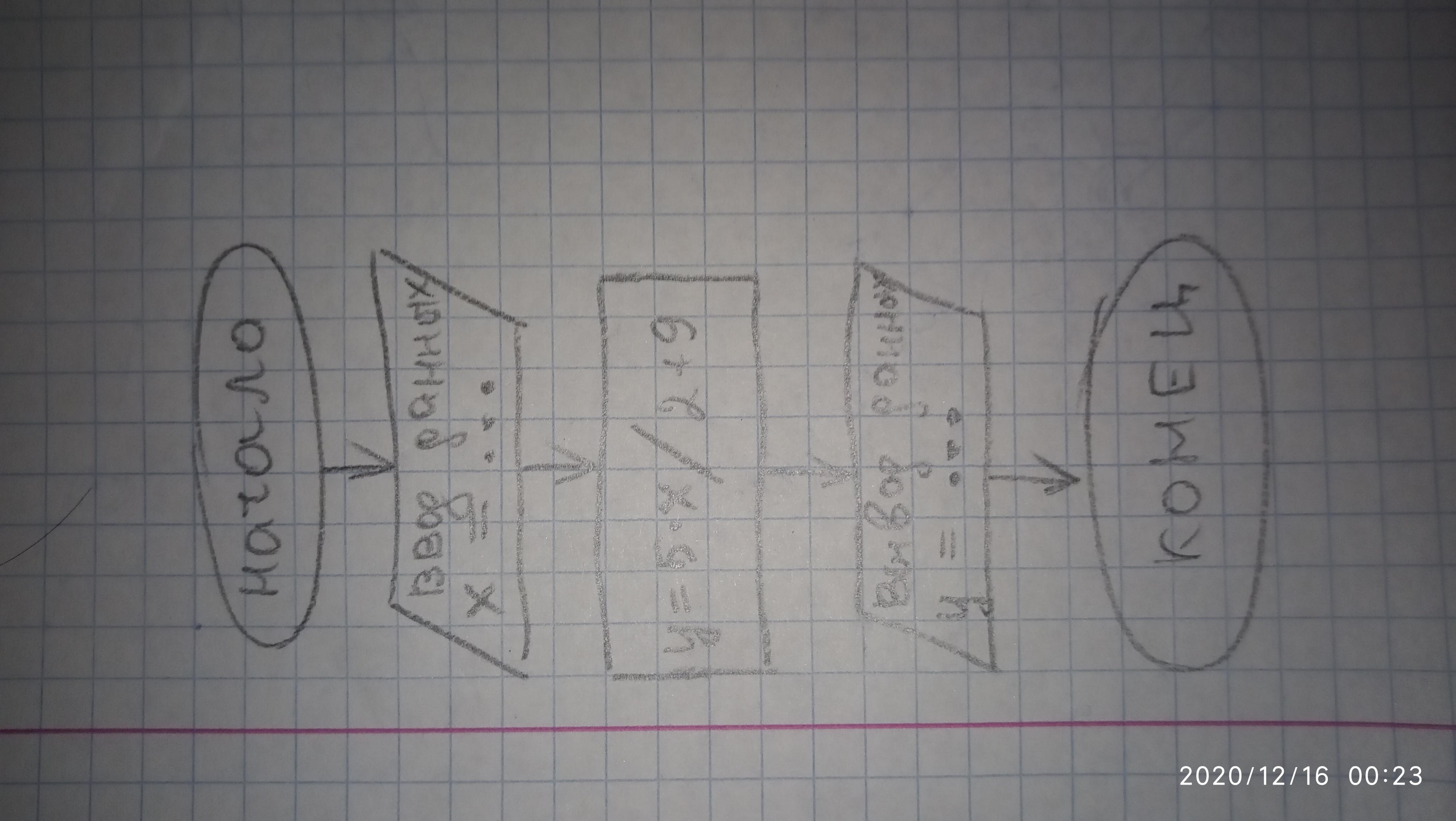 зарисуйте в тетрадь блок схема линейного алгоритма Вычислите выражение y=-5*x/2+9 для заданного числа x помогите пожалуйста кто поможет буду очень благодарен то завтра будут проверять тетради мне завтра в школу вставать рано утром помогите пожалуйста сейчас срочно