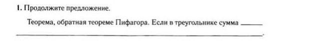 если сумма квадратов длин двух других сторон равна квадрату длин сторон треугольника, то такой треугольник прямоугольный.