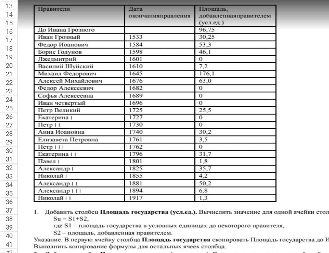 Указание. В первую ячейку столбца Площадь государства скопировать Площадь государства до Ивана Грозного.