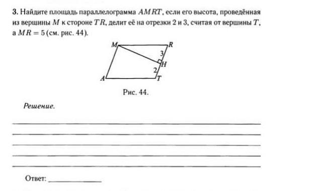 Теорема Пифагора МН=√(МR²-HR²)=√5²-3²=4. S=ТR*МН=4*(3+2)=