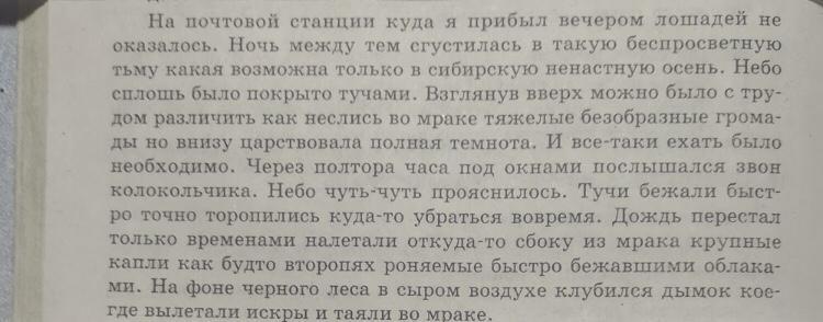 На почтовой станции, куда я прибыл вечером, лошадей не оказалось. Ночь между тем спустилась в такую беспросветную тьму, какая возможна только в сибирскую ненастную осень. Небо сплошь было покрыто тучами. Взглянув вверх, можно было с трудом различить, как неслись во мраке тяжёлые безобразные громады, но внизу царствовала полная темнота. И все-таки ехать было необходимо. Через полтора часа под окнами послышался звон колокольчика. Небо чуть-чуть прояснилось. Тучи бежали быстро, точно торопились куда то убраться вовремя. Дождь перестал, только временами налетали откуда-то сбоку из мрака крупные капли, как будто второпях роняемые быстро бежавшими облаками. На фоне чёрного леса в сыром воздухе клубился дымок, кое-где вылетали искры и таяли во мраке.