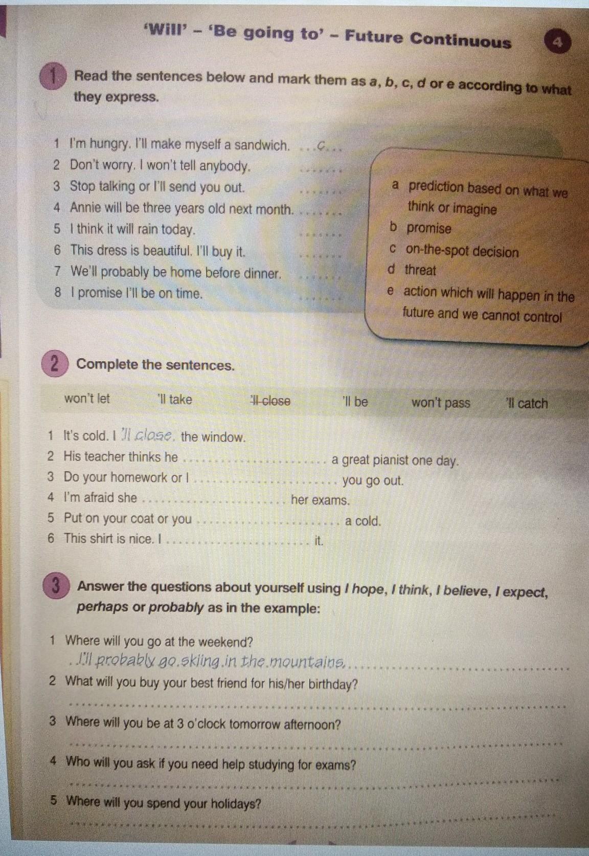 I think I’ll buy her a hat. I’ll perhaps be in the airport. I hope I’ll ask my teachers. I believe I’ll spend them in Miami.