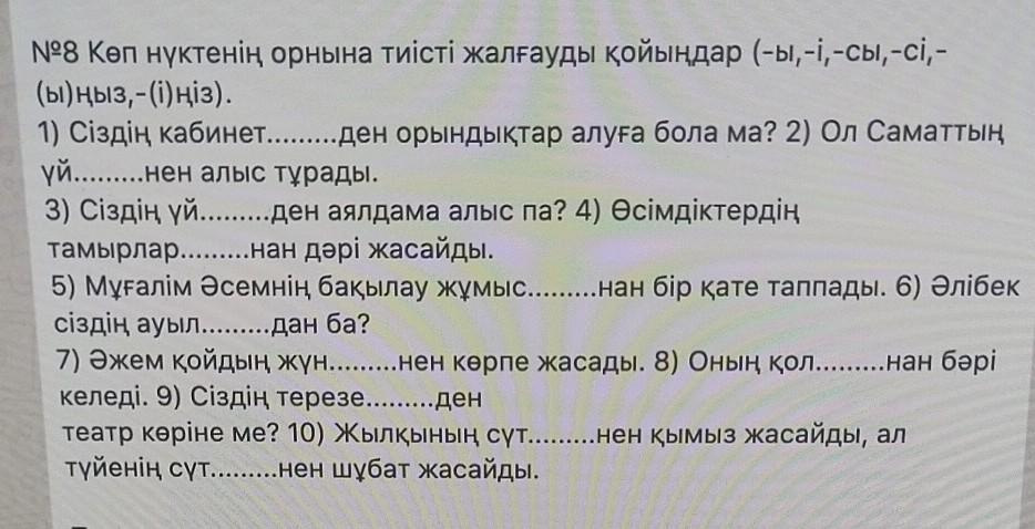 1) Сіздің кабинет.........ден орындықтар алуға бола ма? 2) Ол Саматтың