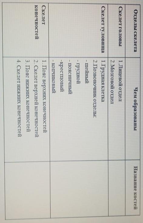 Шейные позвонки,грудные позвонки,поясничные позвонки,крестцовые позвонки,копчиковый позвонки,рёбра,грудина,тазовая кость.
