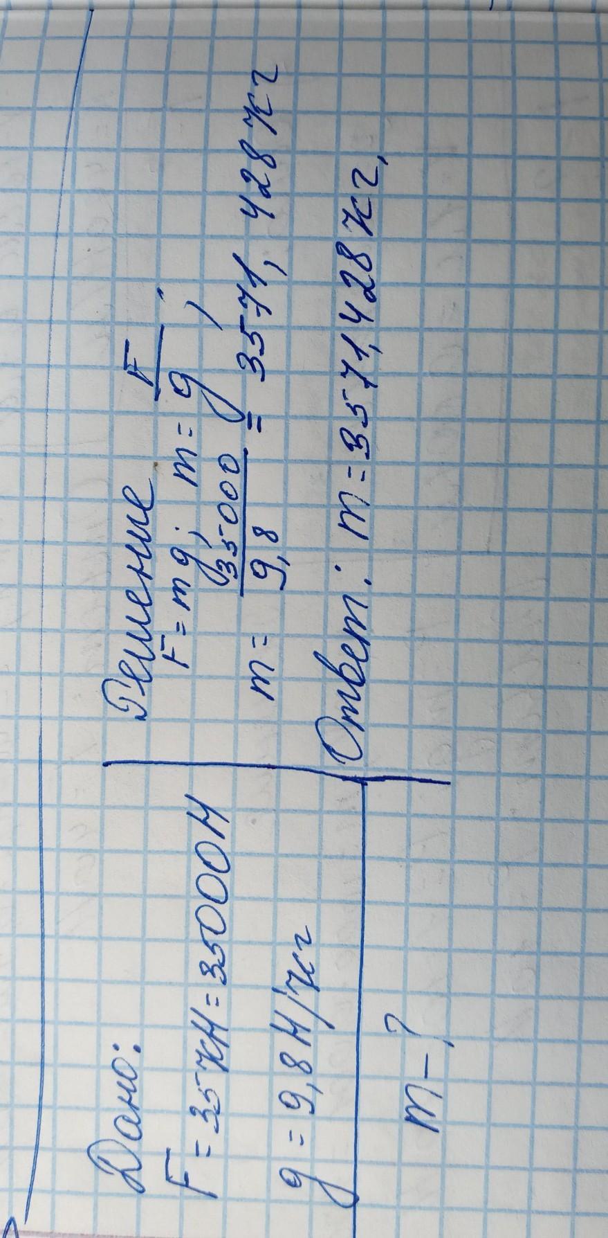 4. Сила тяжести, действующая на тело, на поверхности Земли равна 35 к Н. Определите массу тела. (g=9,8 Н/кг) (3)