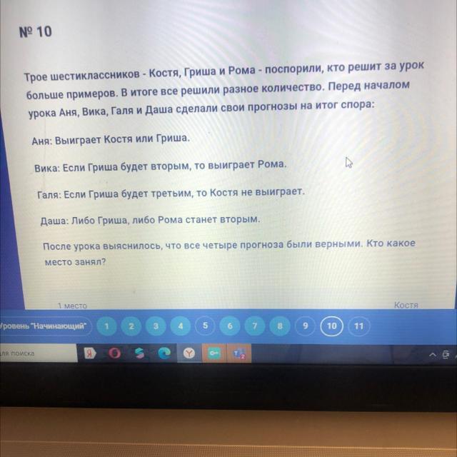Трое шестиклассников - Костя, Гриша и Рома - поспорили, кто решит за урок