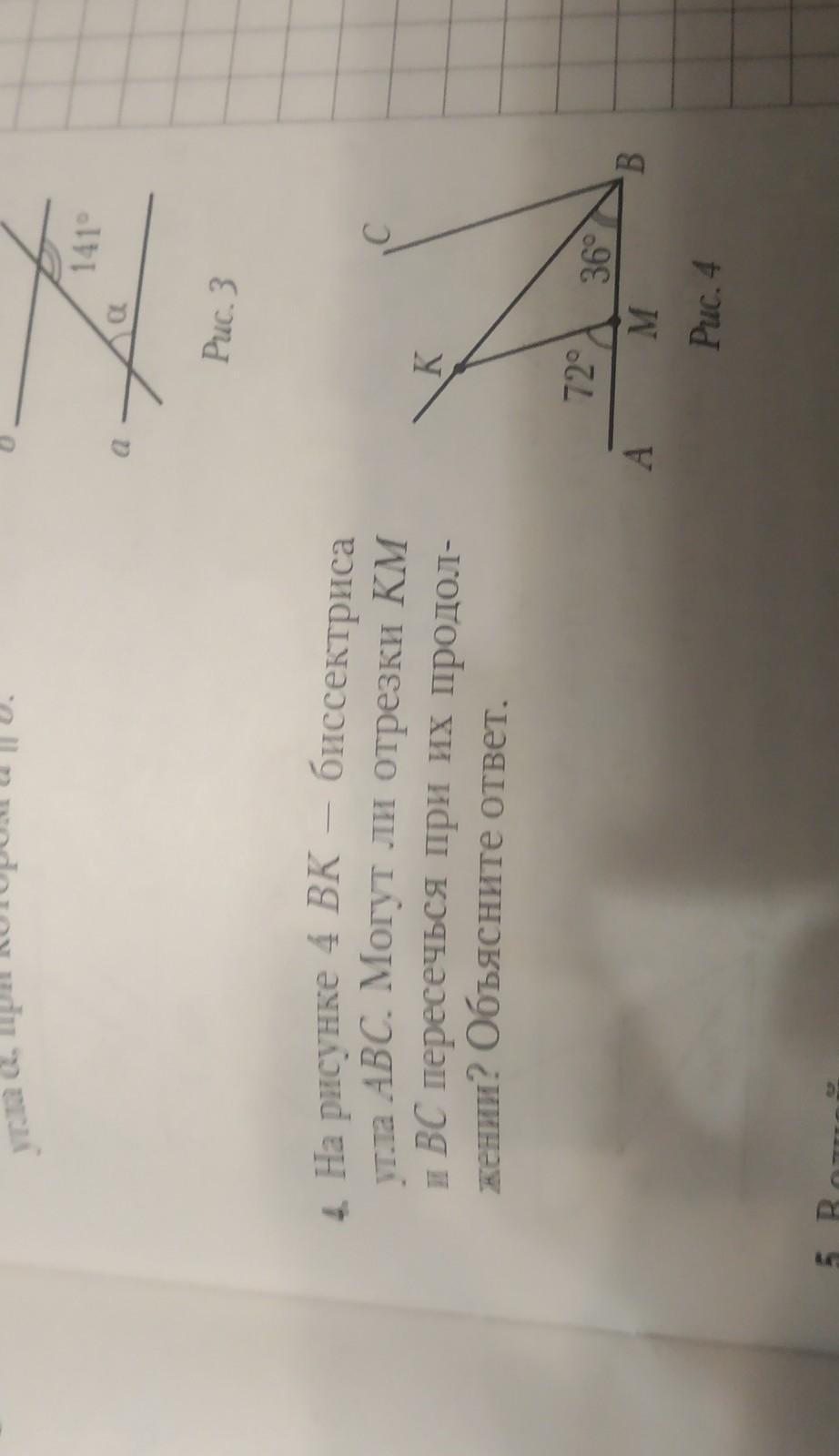 ∠АВС = ∠АМК = 72° ⇒ КМ || ВС ⇒ прямые не пересекутся.