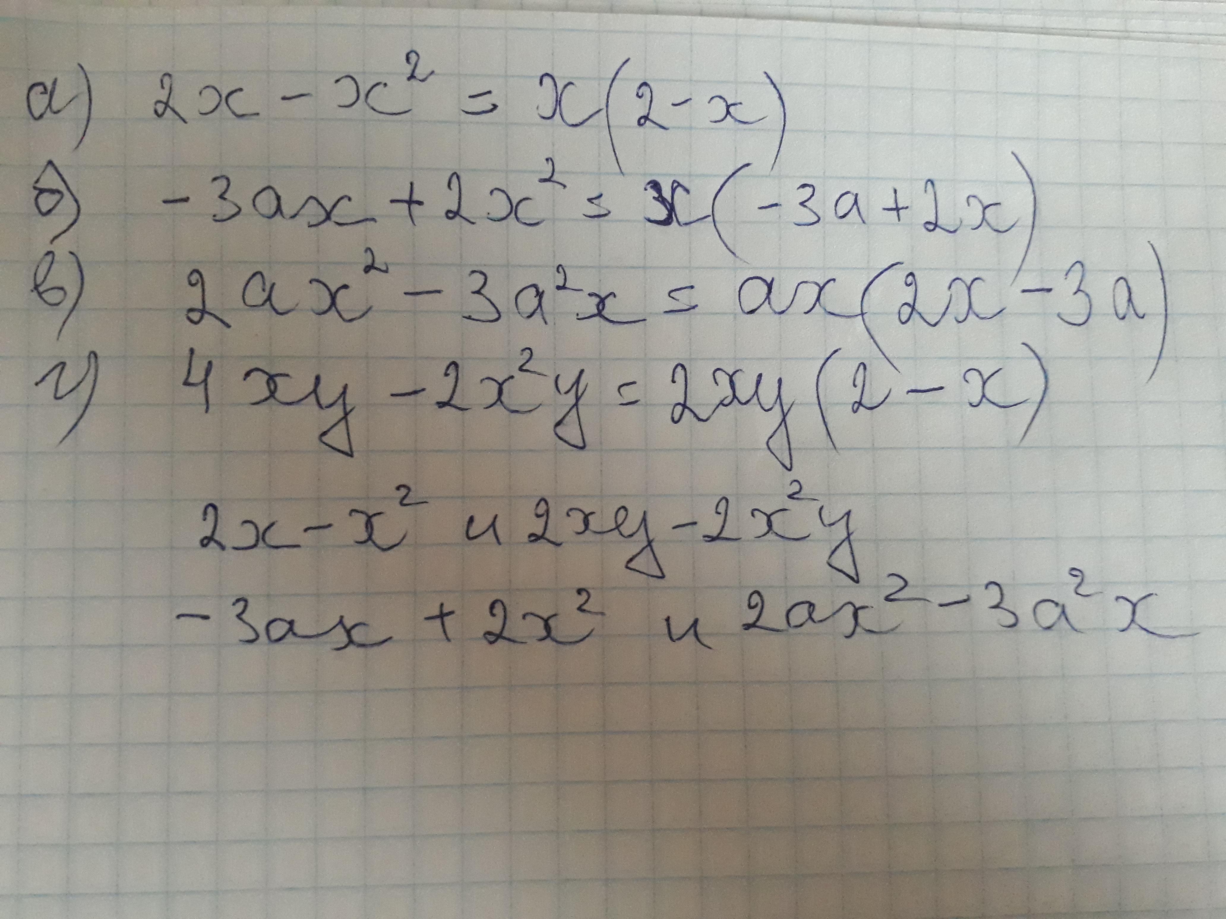 а) 2х-х², -3ах+2х², 2ах²-3а²х, 4ху-2х²у