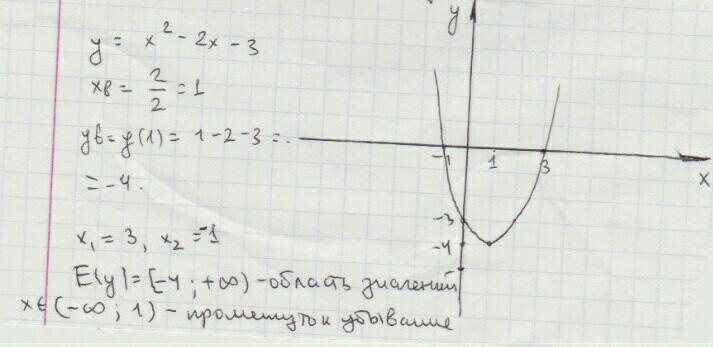 сделайте график функции y=-2x^2 -6x-8.Используя график найдите:1)область значения функции.2) промежуток возрастания и промежуток падения функции.
