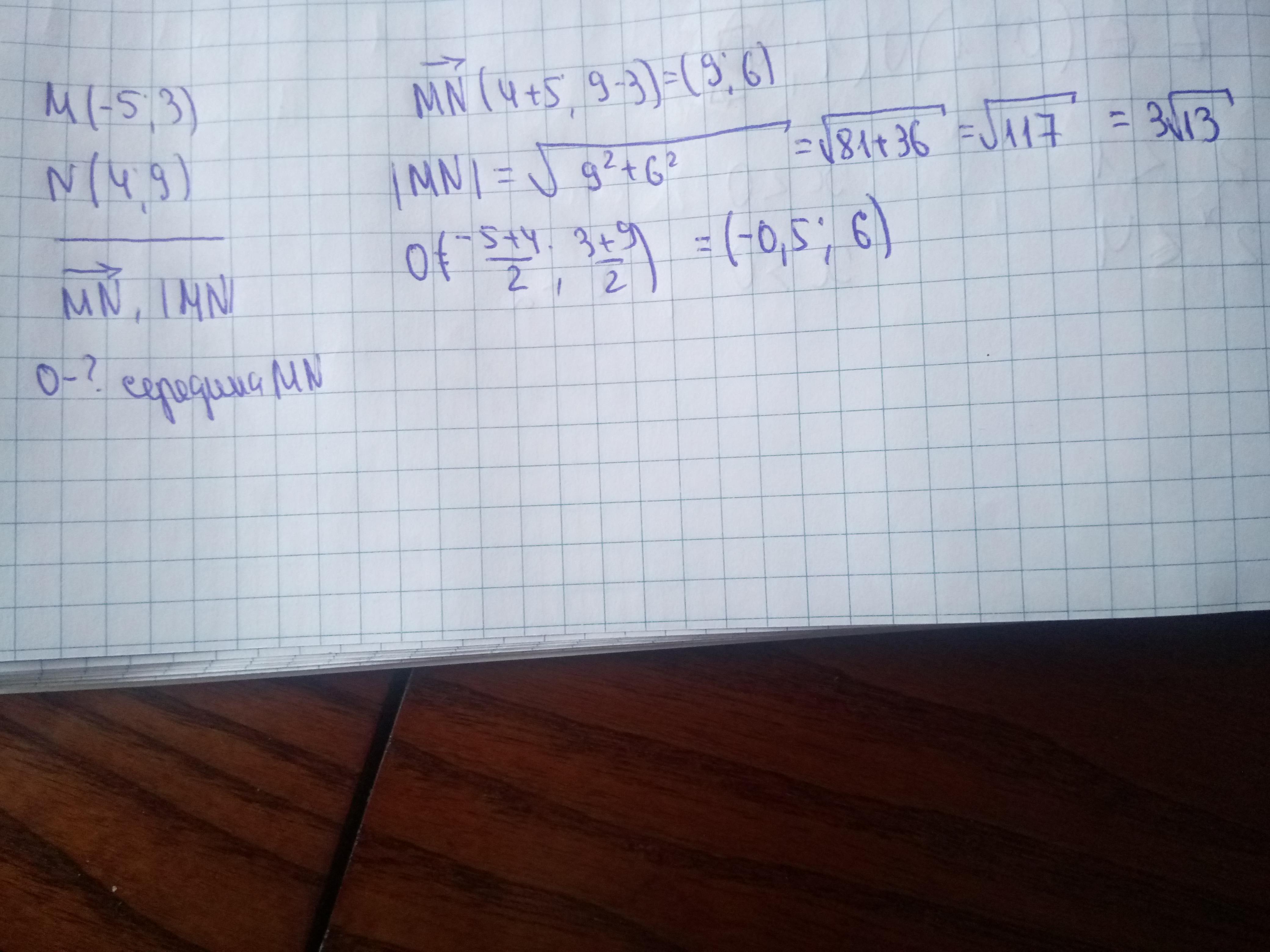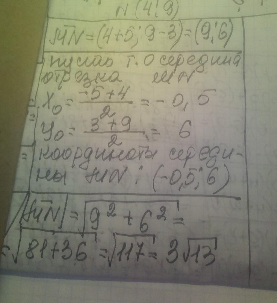 Зная координаты M(-5;3) и N(4;9) найдите: