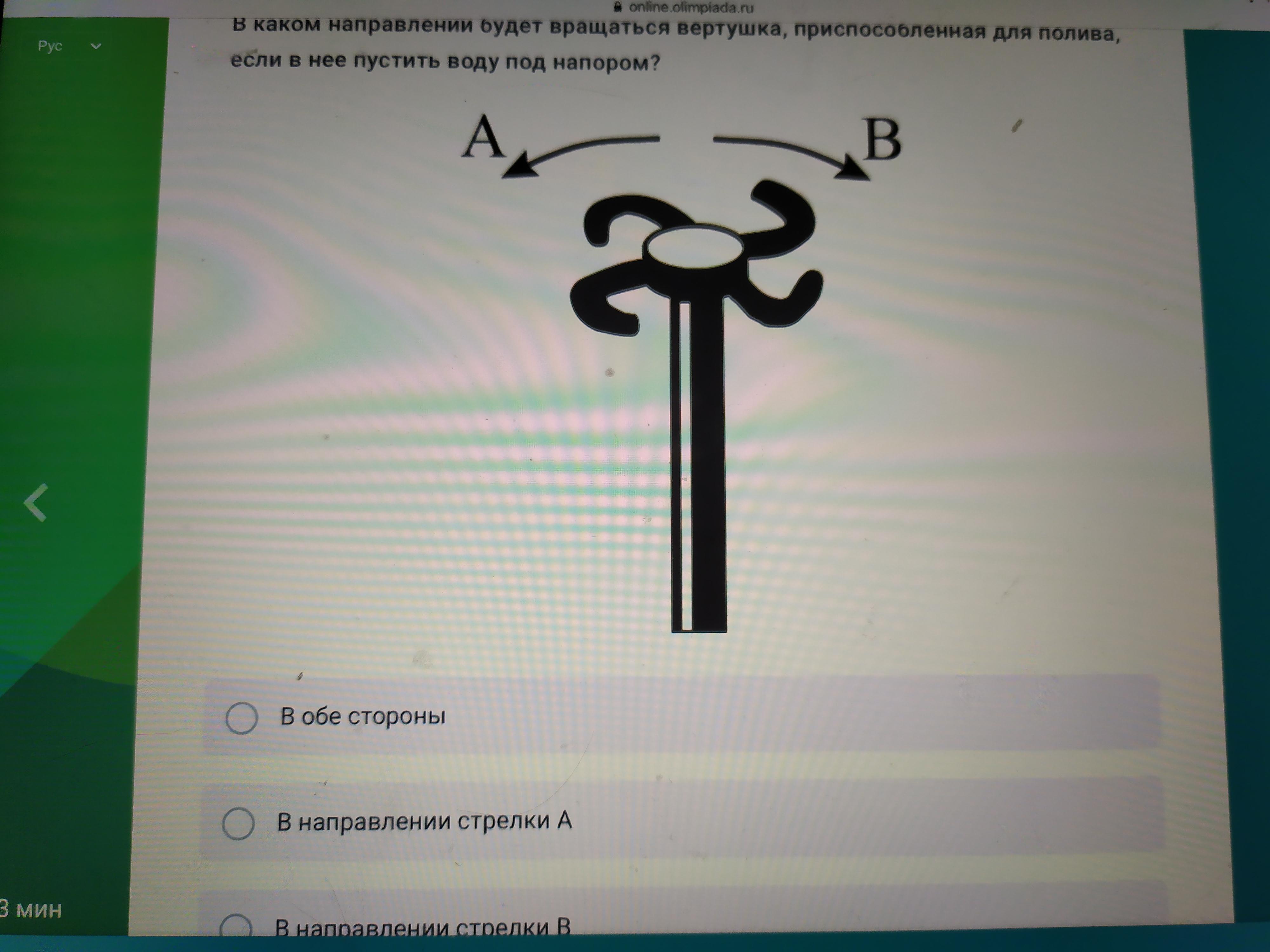 Потоки воды будут отталкивать вертушку в противоположном направлении.