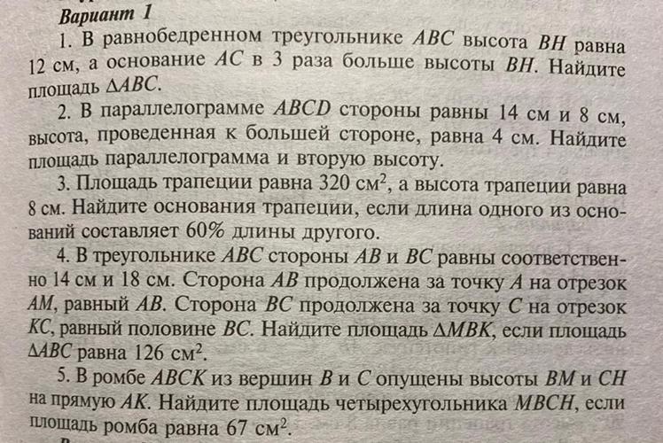 1)BC=AK,AB=CK=>МН×ВМ=67СМ2, АК×ВМ= 67см².