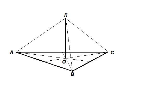 Проведем КО⊥(АВС). КО - расстояние от точки К до плоскости треугольника.