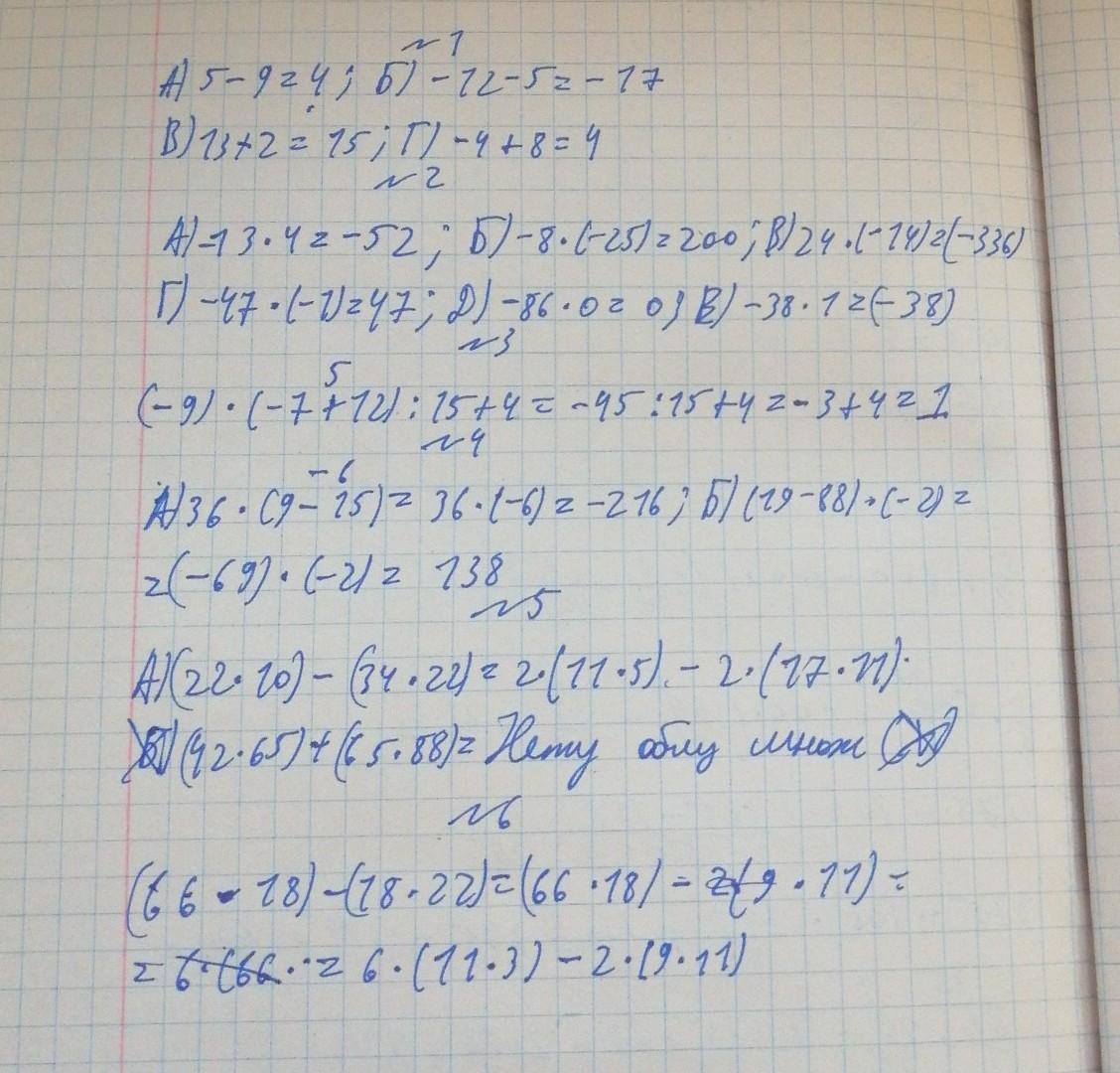 А) 36 * (9 – 15 Б) (19 — 88) * (-2)