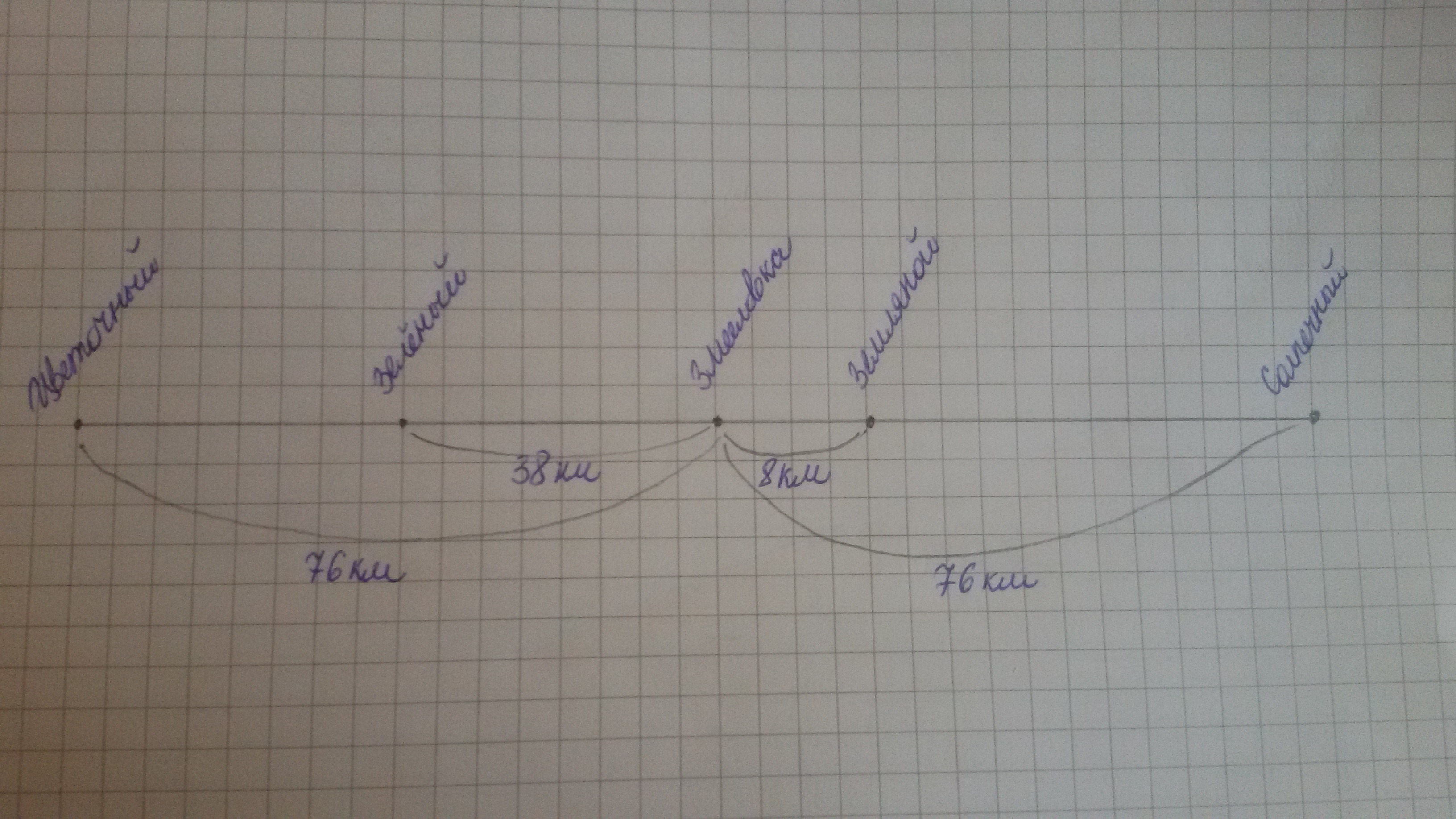 г) 76 - 8 = 68 км - расстояние между Земляным городом и Солнечным.