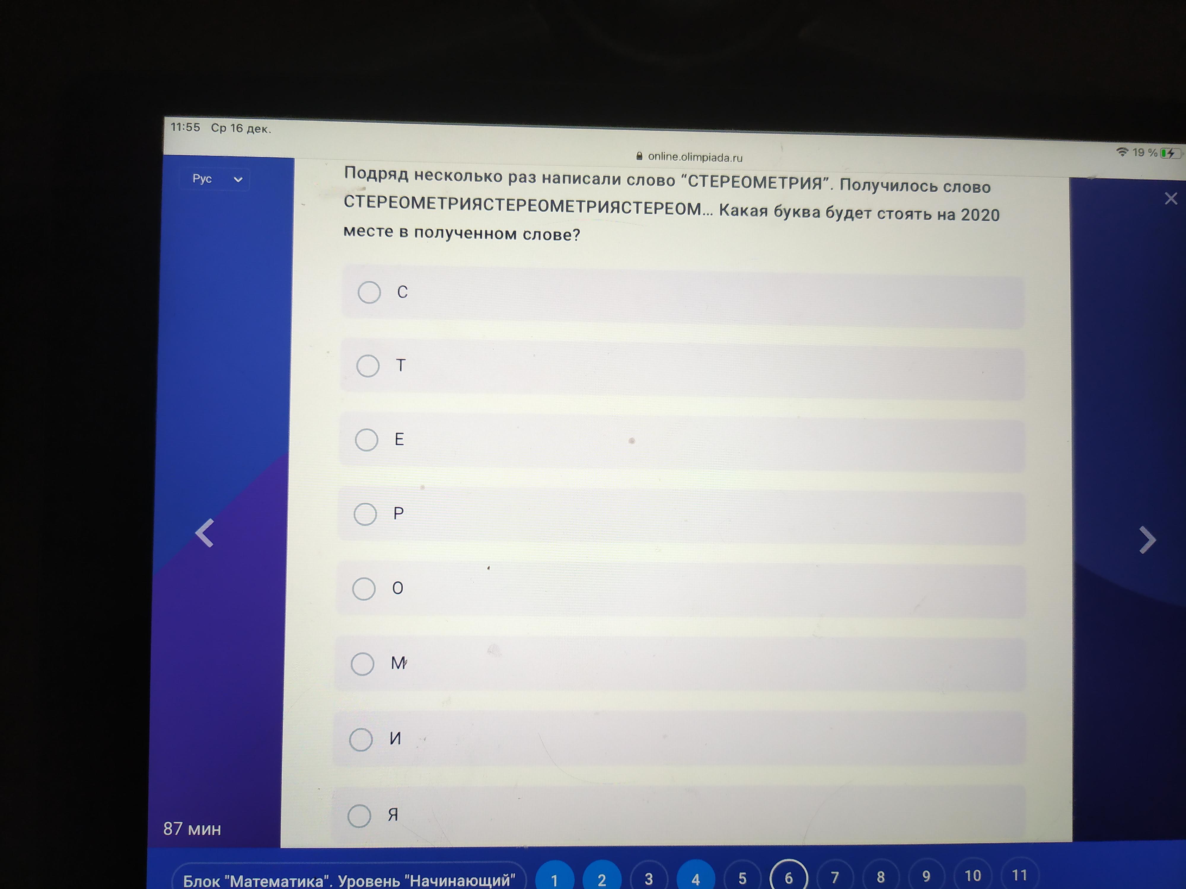 2020:12=168 целых и в остатке 4, получается 4 буква