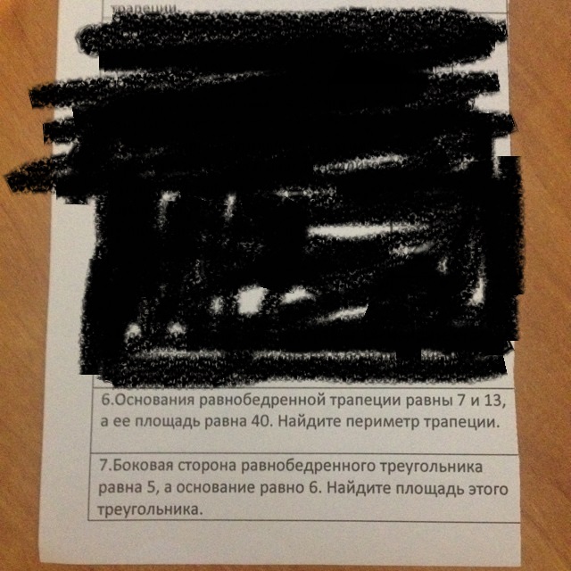 я поняла как) строим 2 перпендикуляра, получаем по бокам 2 треугольника. Они равны, т.к. трапеция равнобедренная. Через площадь ищем высоту. Это будет 20/2*х=40, х=4. Основание делится на 3,7 и 3. Найдем боковую сторону бокового треугольника по теореме пифагора 4 в кв+3 в кв=25, и сторона равна 5. Значит периметр равен 7+13+5+5=30