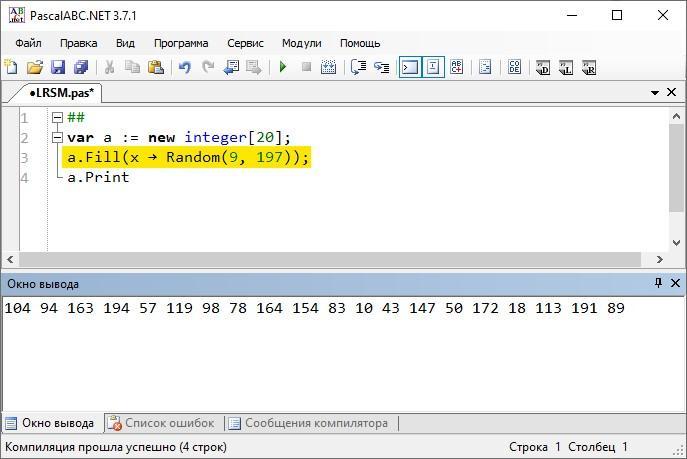 Дан целочисленный массив из 20 элементов. Напишите программу заполнения массива случайными числами, значения которых изменяются в диапазоне от 9 до 197.