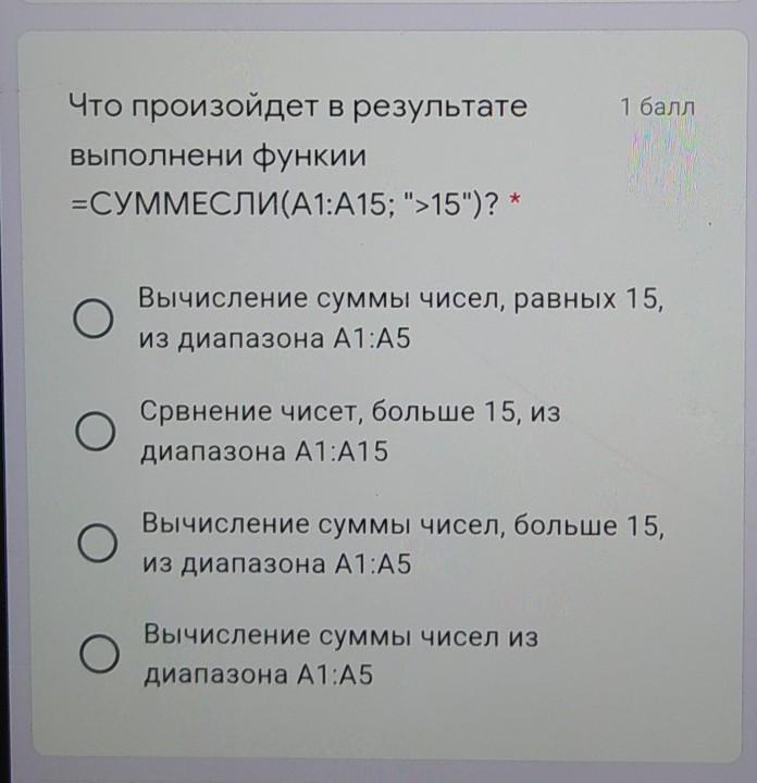 =СУММЕСЛИ(A1:A15; ">15")? *