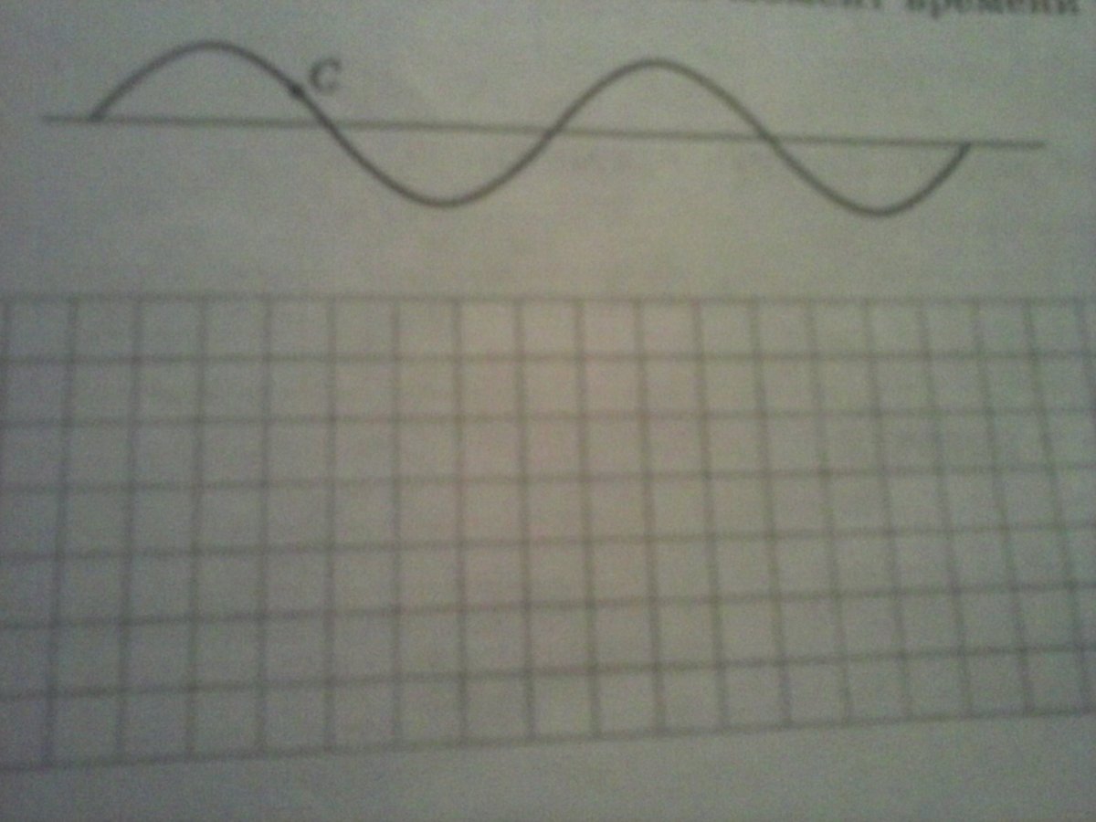 Легко понять, что если точка С движется вверх то горб волны будет смещаться в сторону частицы С, Значит волна движется точно вправо