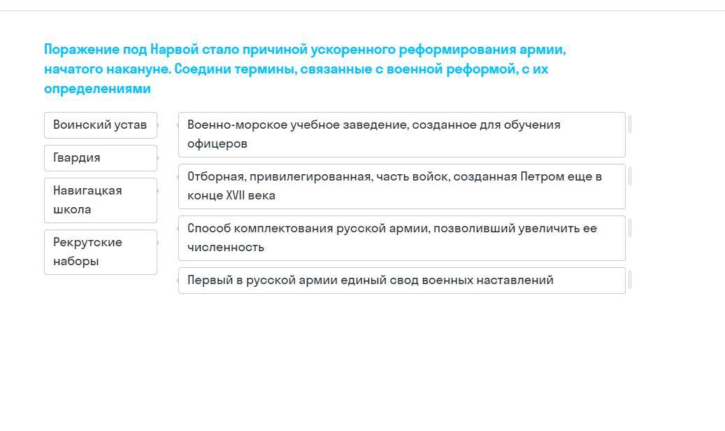 1 - навигацкая школа, 2 - гвардия, 3 - рекрутские наборы, 4 - воинский устав