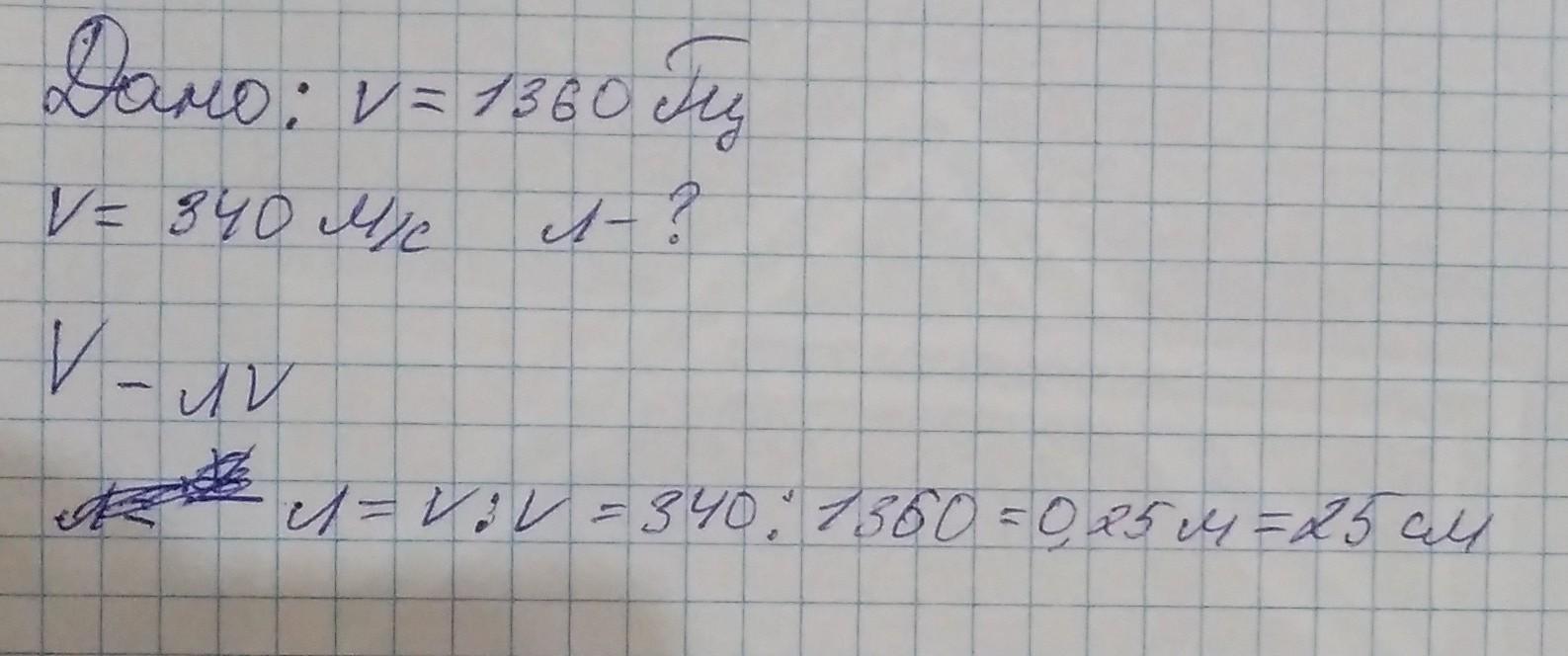 л=V/v=340/1360=0,25 м=25 cм