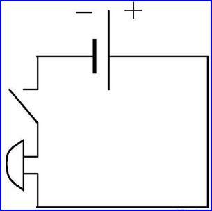 Схема электрической цепи, состоящая из гальванического элемента, выключателя и звонка.