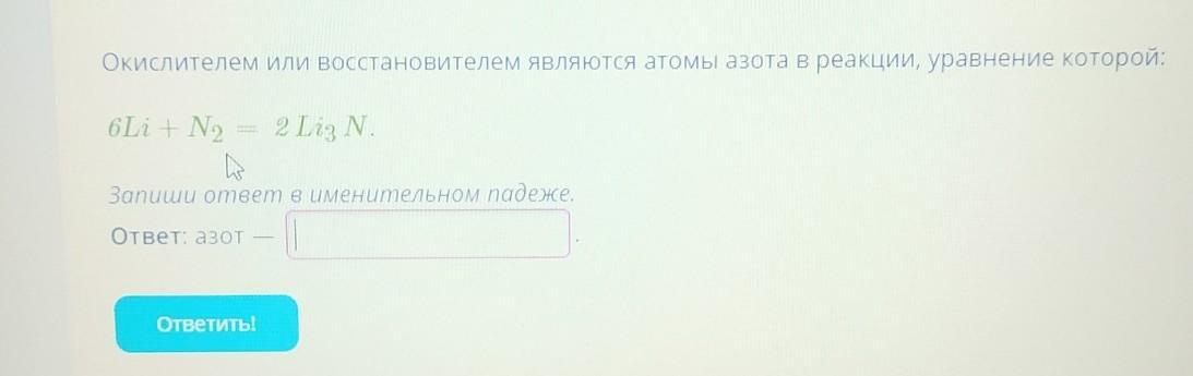 Ответ: 6Li+N2=2Li3N
