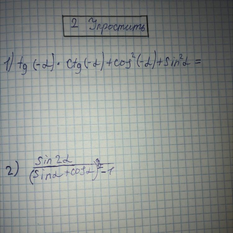 Тригонометрия, упростить, даю 40 баллов, ответ лучше дать фотографией, можно и 1 задание сделать, а лучше 2))