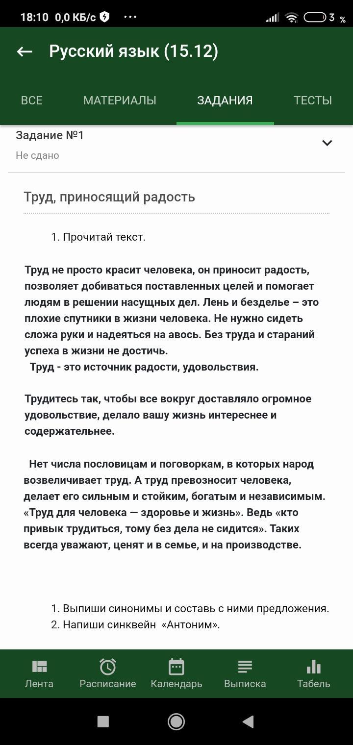 В русском народе детей с самого раннего детства приучали к труду. В качестве правил трудового поведения выступали пословицы и поговорки. Нет числа пословицам и поговоркам, в которых народ возвеличивает труд. А труд превозносит человека, делает его сильным и стойким, богатым и независимым. «Труд для человека — здоровье и жизнь» . Ведь «кто привык трудиться, тому без дела не сидится» . О людях, которые все умеют, говорят: «И швец, и жнец, и на дуде игрец» , то есть — умелый, работящий человек. Таких всегда уважают, ценят и в семье, и на производстве. "Без труда не выловишь и рыбку из пруда" - всякое дело требует сноровки, терпения и умения. Именно труд облагораживает и красит человека, делает его сильнее, умнее, лучше. Нужно ценить и уважать труд других людей, и трудиться самому - только тогда ты будешь счастлив.