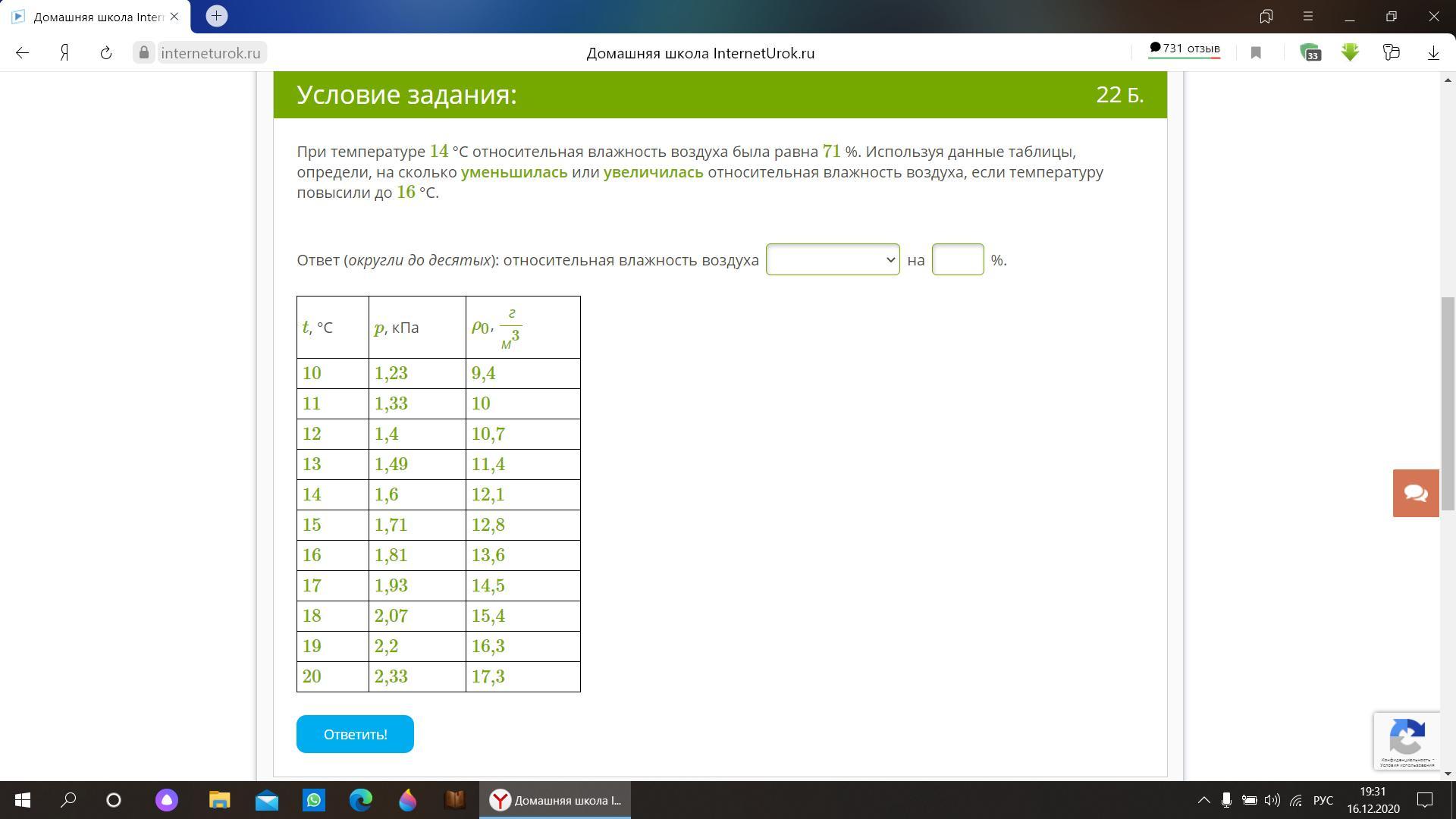 3) po=φ*poн=0,56*17,3=9,169 г/м3
