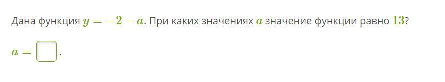 Дана функция y=−2−a. При каких значениях a значение функции равно 13?
