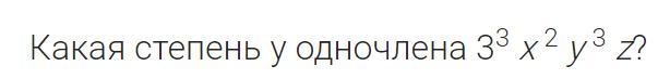 Степенью одночлена называется сумма показателей степеней всех переменных, входящих в этот одночлен.