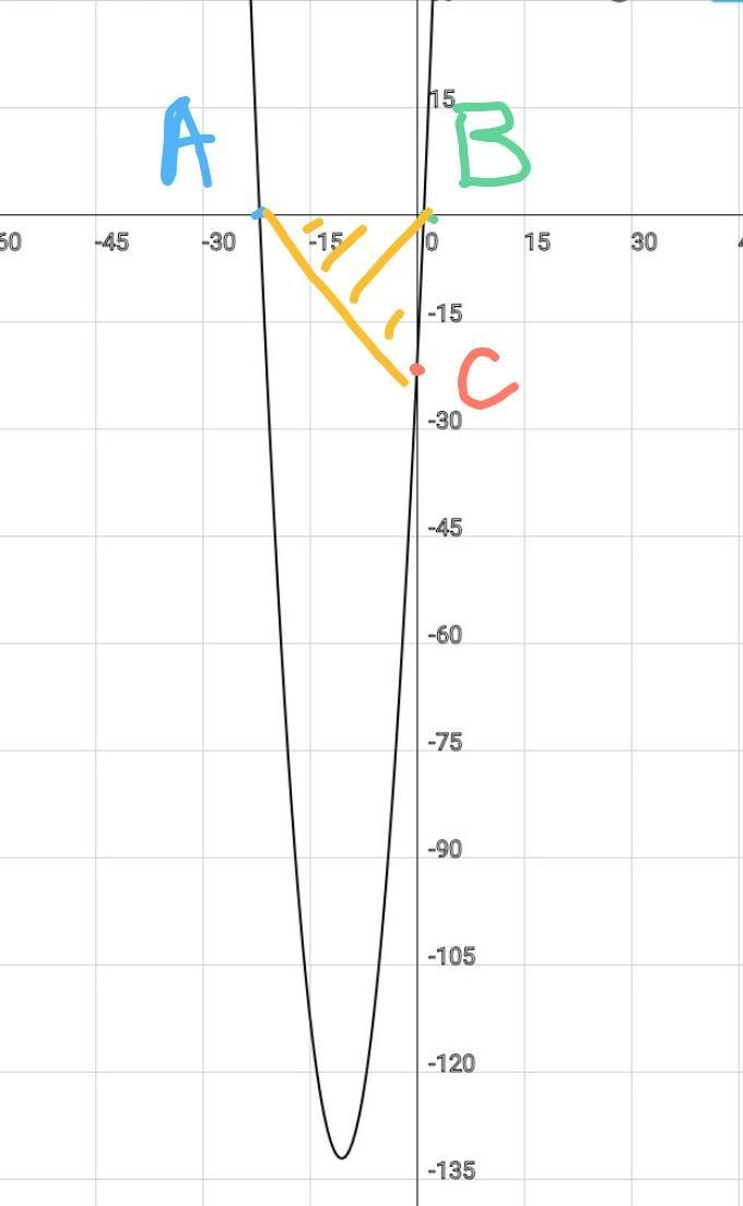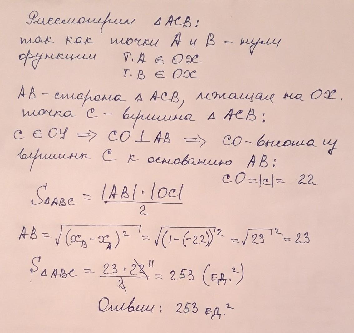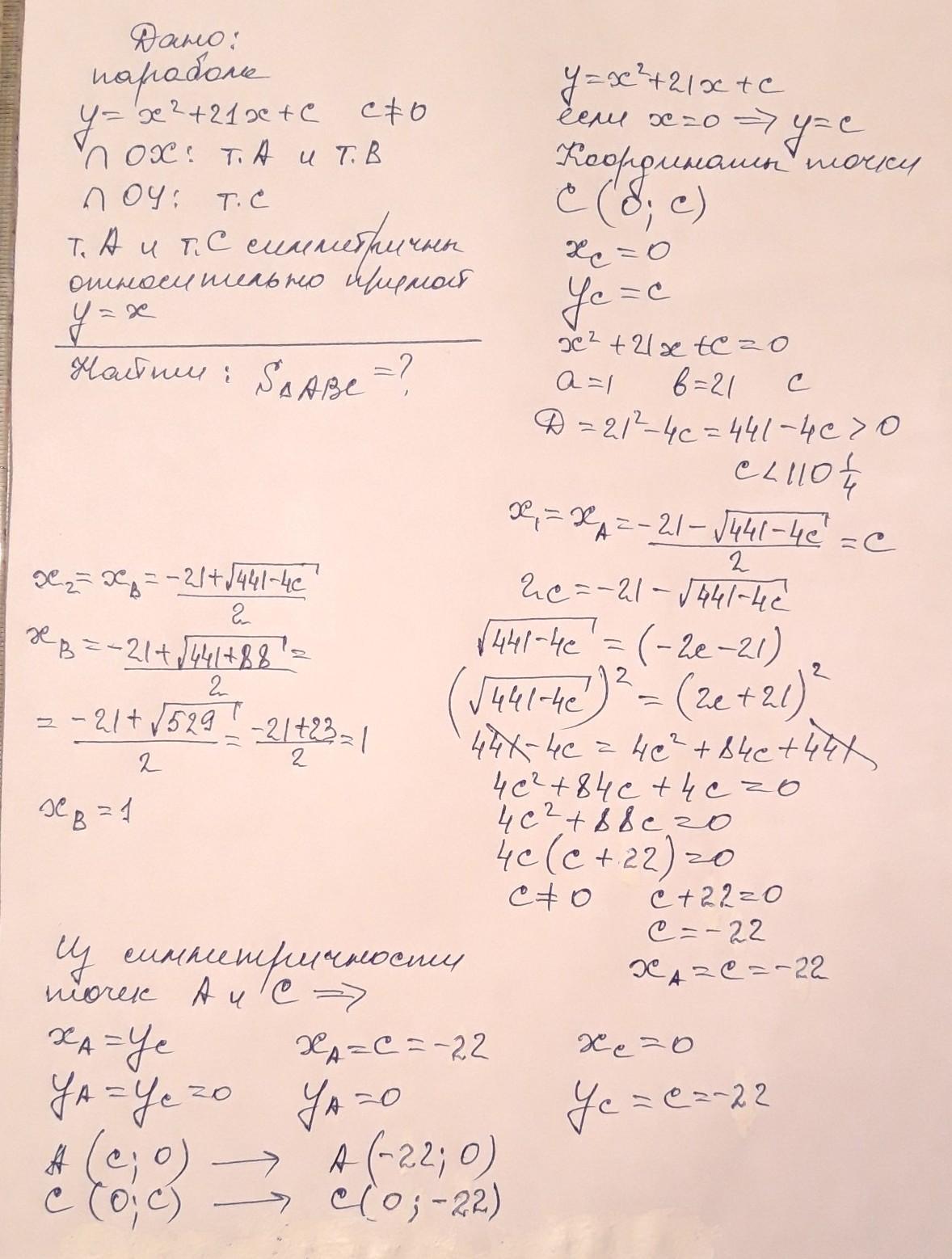 Парабола y = x2 + 21x + c, где с ≠ 0, пересекает ось Ох в точках А и В, а ось Oy – в точке С.