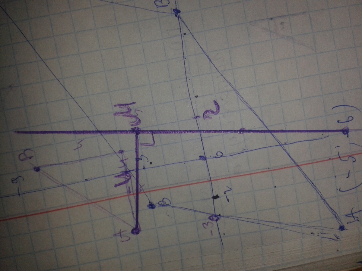 на прямую проходящею через точки а(1;-2) и в(0;-7) опущен перпендикуляр из точки с(-3;4).найти точку пересечения перпендикуляра с прямой ав